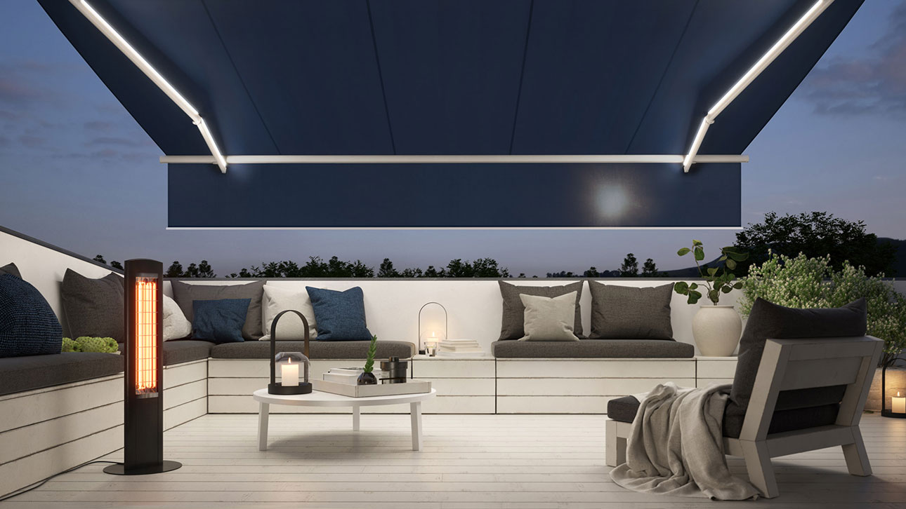 Die schlanke ovale Kassettenmarkise punktet mit Stabilität und Vielseitigkeit gerade bei großen Flächen.
